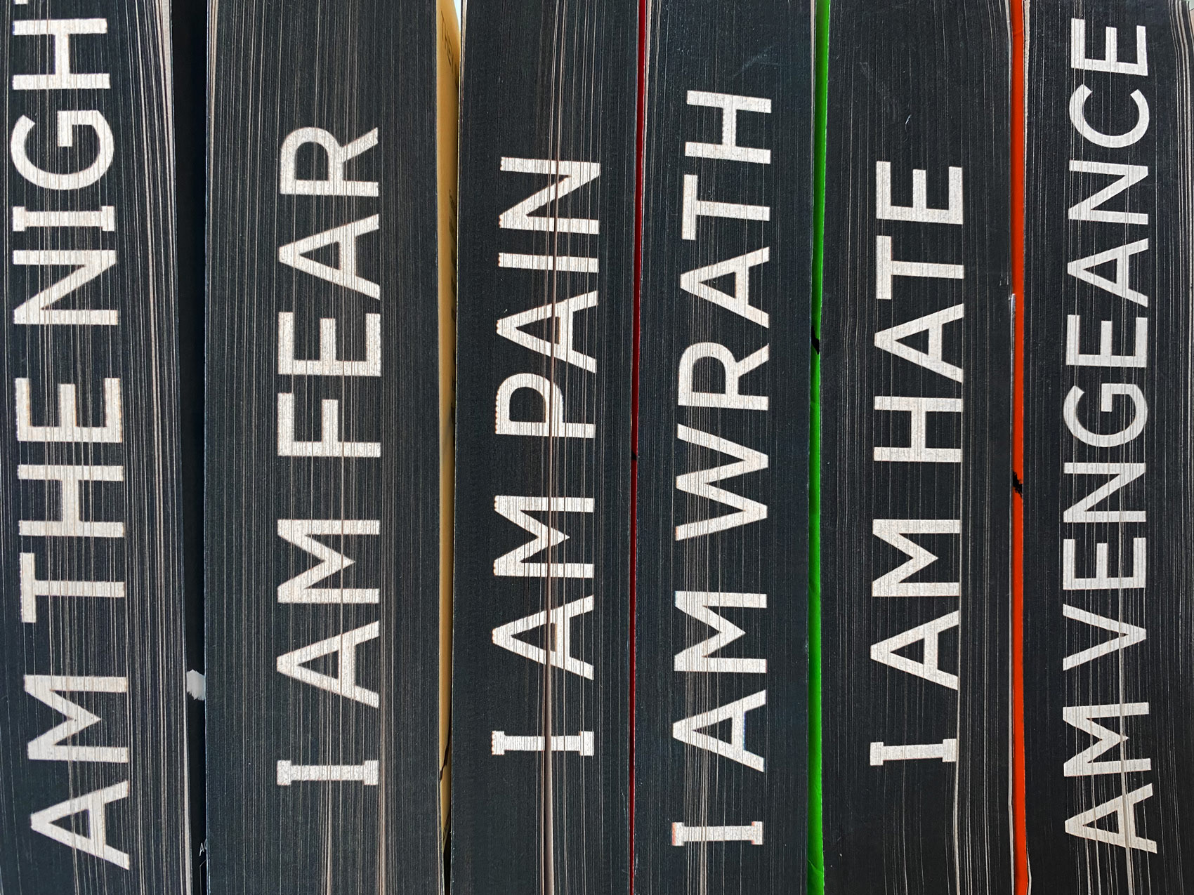Bold colours and a striking graphic look for these Ethan Cross paperbacks. A series of 6 with sprayed and stencilled edges with emboss and spot UV on the type.