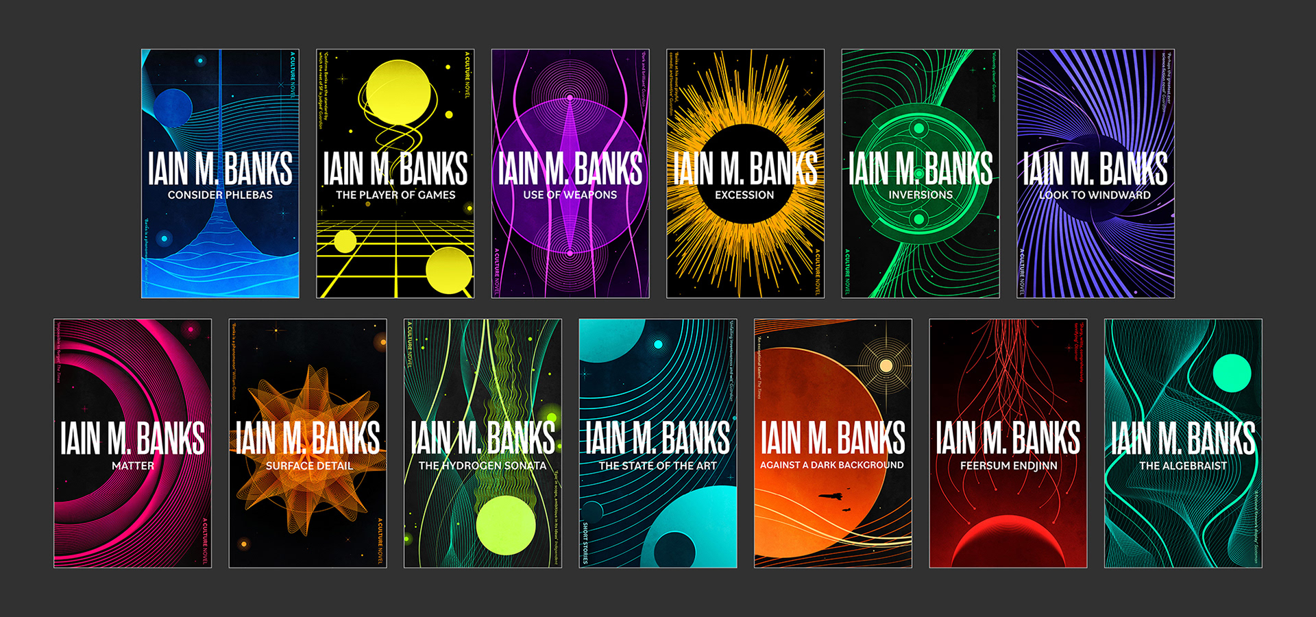 Full series redesign for Iain M Banks’ The Culture and other science fiction works.